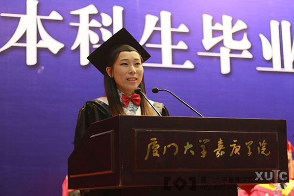 我是厦门大学嘉庚学院艺术设计系的陈苹苹,非常荣幸能够代表2015届毕业生在毕业典礼上发言。