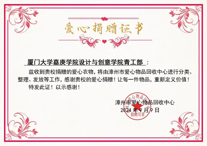 此次回收共收了120余件并且荣获了爱心捐赠证书。