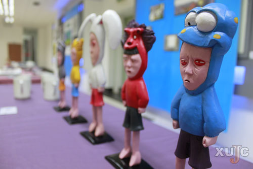 另外一个展点,两个女生正弯下腰来仔细“研究”一排神态各异的娃娃。“你看你看,它们的表情都好好玩呀”“哈哈,这个还有点‘狰狞’呢”……听着她们热火朝天的讨论,旁边的参观者也被吸引了过去,一个穿格子衬衫的男生不住地点头,“嗯,的确很有个性。”