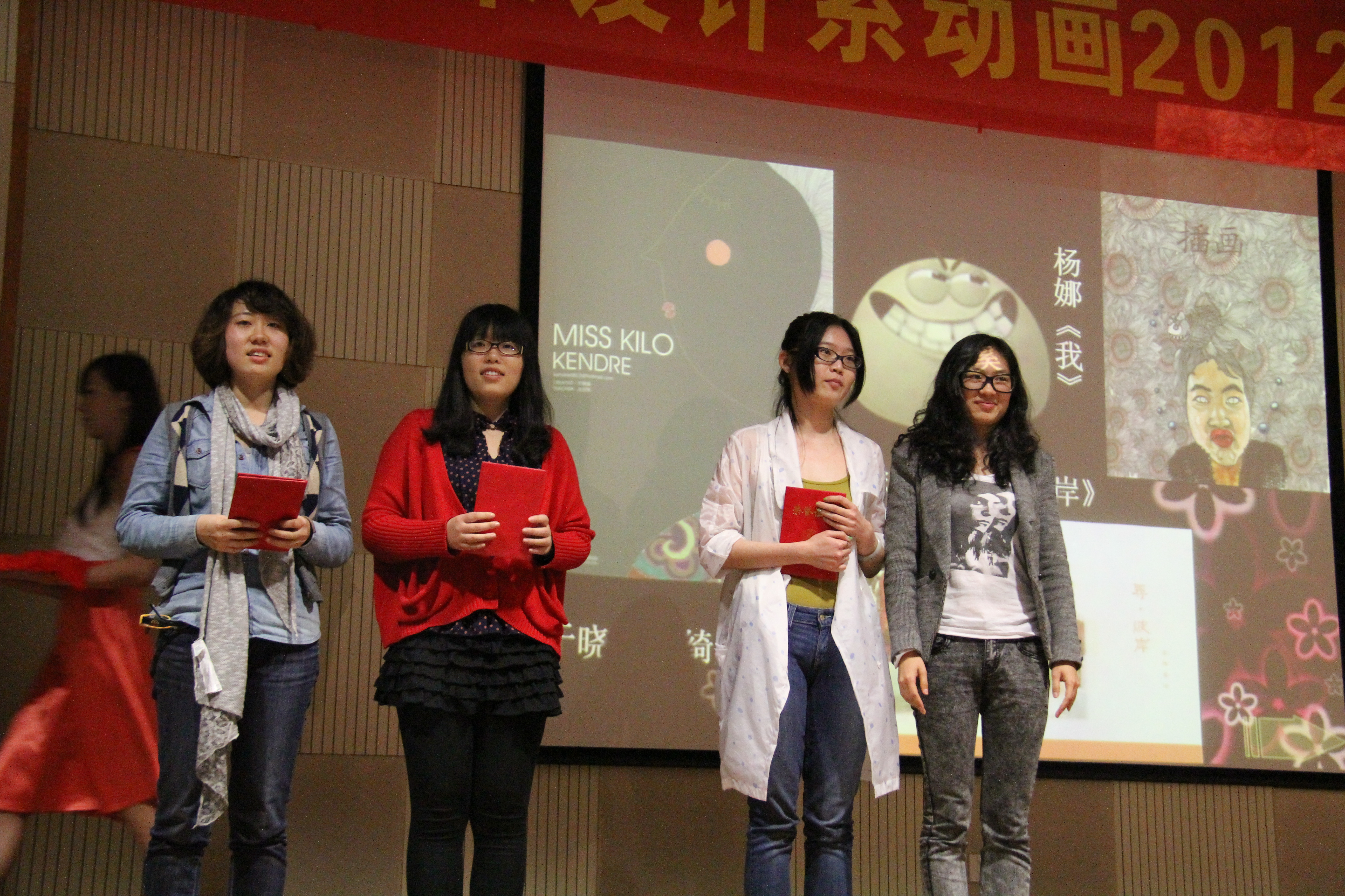 颁奖大会的高潮是2012届毕业生吴桂华带来的插画作品《妈妈的童年》带来的。吴桂华用自己灵动的画笔朴实演绎了妈妈的童年故事。满含深爱的插画作品在柔美音乐歌声配合下感动了在场的所有观众。吴桂华在讲述创作故事的时候说,希望这部作品能成为今年献给她妈妈的母亲节礼物。