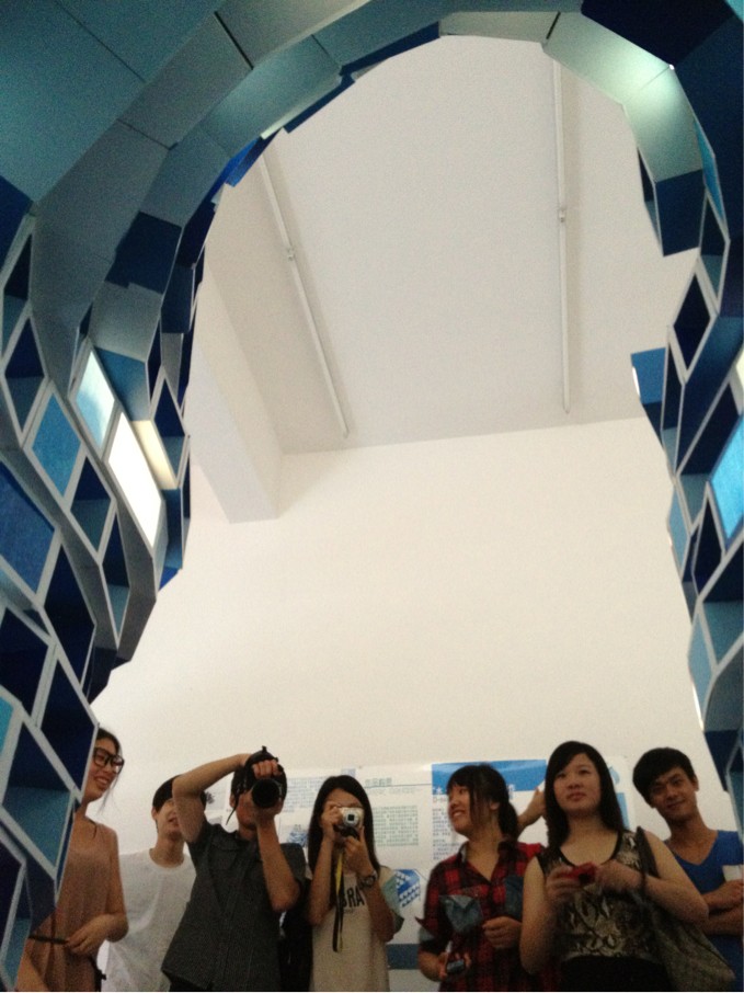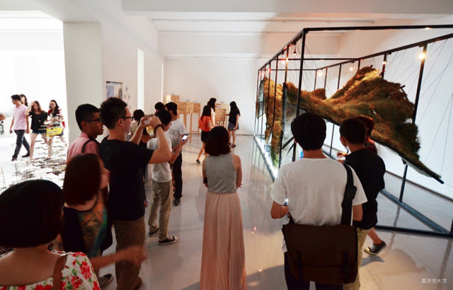 6月17日,在滂沱大雨中,我院校园开放日仍如期举行,嘉庚美术馆是今年新增添的一个开放点。这天,来宾们畅游在“水饰界”的作品中。这些作品是由我院艺术设计系2010级景观艺术专业方向的同学们设计的。