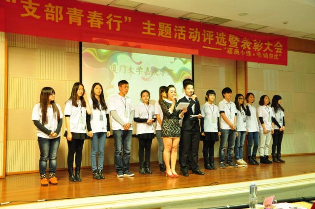 我系从11月中旬开始,11-12级各团支部进行了以“嘉庚小绿,非诚勿扰”为主题的一系列维护小绿的活动,在本次活动中,12级四个团支部脱颖而出,顺利进入到主题活动评选暨表彰大会。经过激烈的角逐,最终12级第二团支部凭借优异的表现夺魁,第三团支部获得第二名,动画团支部获得第三名,第一团支部获得优秀奖。