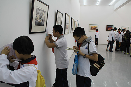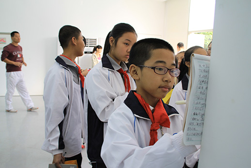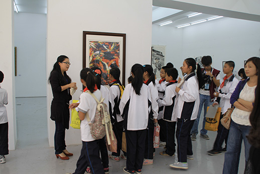 为了促进交流,南太武小学的同学们在校长和老师们的带领下在嘉庚美术馆观看了此次画展,共约有50人参与了此次活动。同学们认真聆听讲师的讲解,并不时做着记录。遇到不懂的问题,他们会向老师提出疑问,讲师们就同学提出的问题一一做了详细的解答。