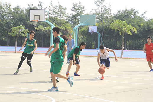 中午12:30,艺术设计系的新生篮球赛在中区篮球场举行,一共4支队伍参加了这场比赛,他们分别是表视觉传达、动画、产品和环艺4个专业的队伍。