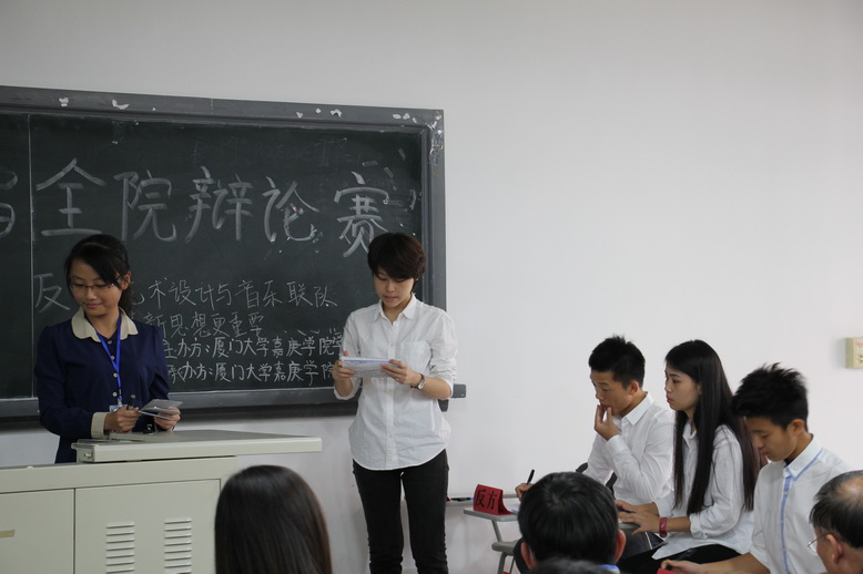 11月20日下午1点30分,由厦门大学嘉庚学院学工部和团委共同举办的第八届全院辩论赛的初赛第二场在公一405教室举行。