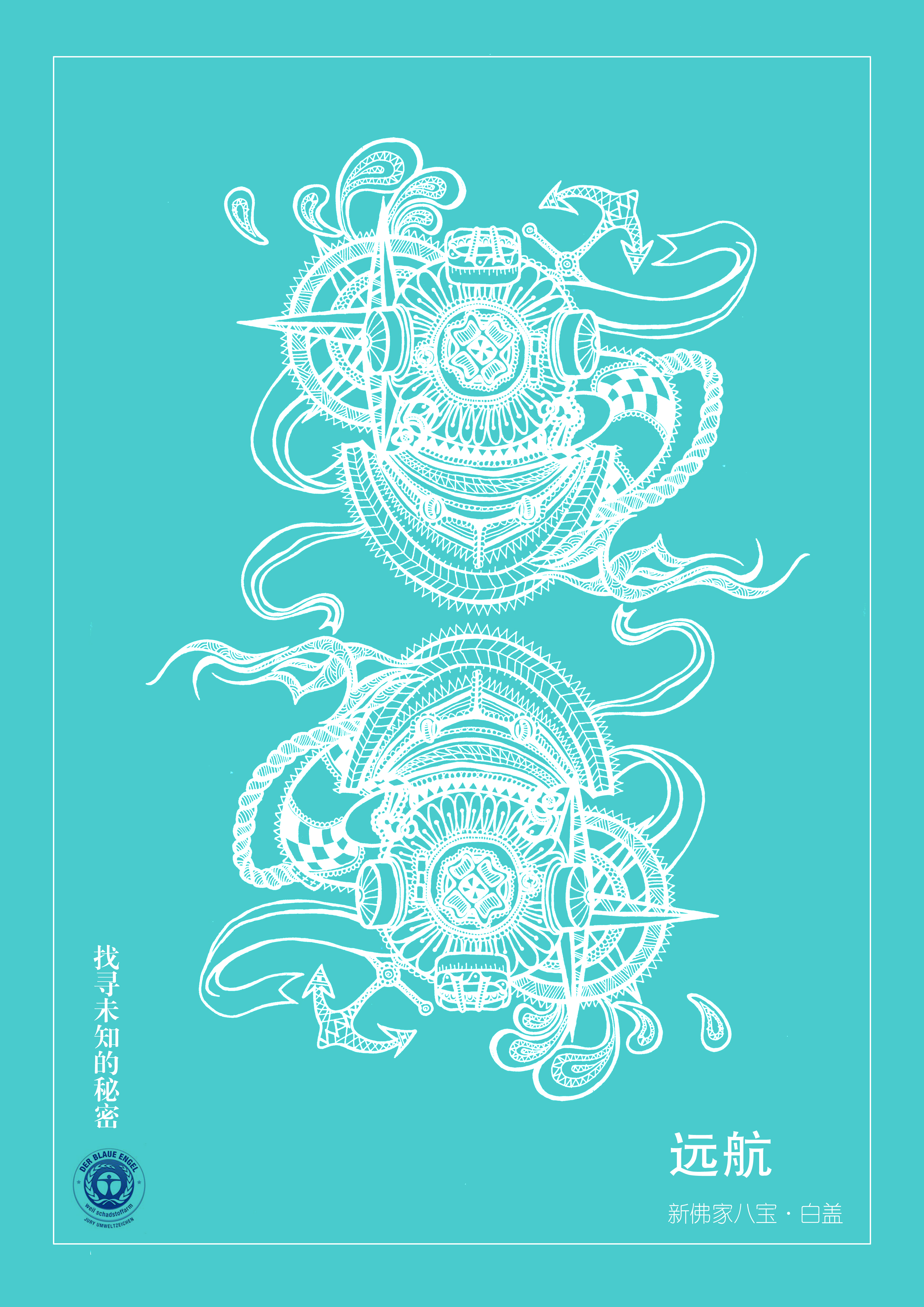 三名同学围绕大赛主题,设计了相关海报。林立明同学从“佛家八宝”中得到灵感,结合海洋的特质创作系列海报——远航、未知、神秘。胡楚依同学的《海底幽灵的愤怒》则是从自己的平时绘本里找到共性,从而产生联想,从海洋生态破坏入手。刘蕾同学则从人类自身的生存环境进行换位思考,呼吁大家为海洋生物创造自由、美丽的环境,创作出海洋里的大脸鱼、鲨鱼、章鱼系列海报。