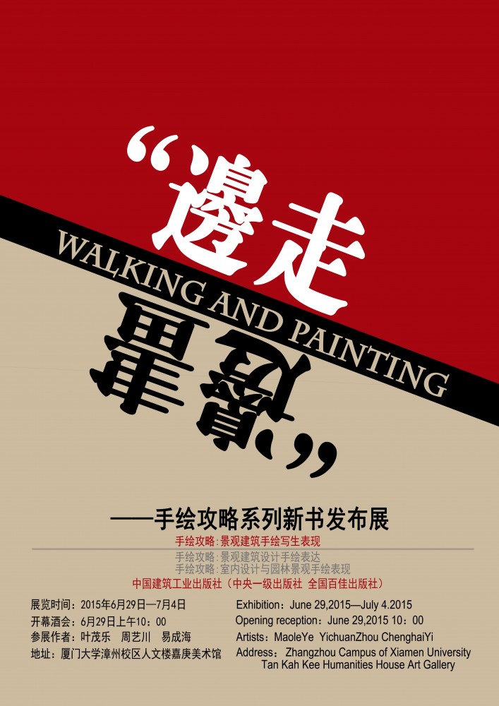 以“边走边画”为主题的《手绘攻略》丛书之《景观建筑手绘写生表现》新书发布会暨作品选展将于6月29日起在嘉庚美术馆举办。丛书主创、资深手绘创作人、我系专任教师叶茂乐将现场举办签售活动。活动将于29日上午10点将在美术馆举办开幕酒会,并延续到7月4日结束。