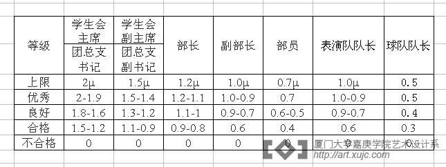 表演队、球队由学生会主席团及各部门根据工作情况评定。