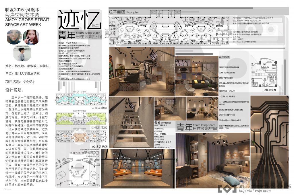 12月10日,“联发2016·凤凰木两岸空间艺术周颁奖典礼——设计师之夜”在厦门湖里联发华美空间隆重举行。艺术设计系2013级环境设计专业林久敏同学及2014级环境设计专业廖淑敏、李佳忆同学的作品《迹忆》(指导老师:李波、商墩江、王廷廷)获得本次艺术周的铜奖并获2000元奖金。作品空间以一个磁带盒展开,磁带具有过去的记忆和记录未来的功能,就像是音乐是延续不断的。以磁带盒为主题的公寓是希望无论何时怀揣梦想的我们都要坚持下去,拥有一盒属于自己的关于自己梦想的磁带盒记忆。