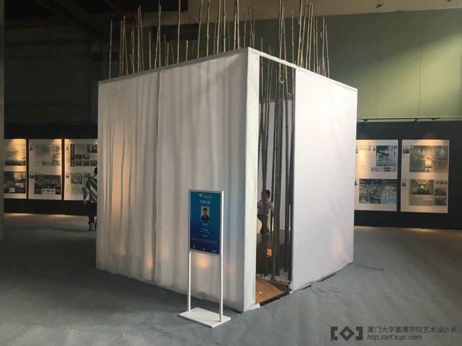 与此同时,艺术设计系李波老师主笔的《竹韵光影》在艺术周中展出。作品设想空间是画纸,竹和光是画料,我们是画匠,当画纸画料画匠交融时,那是酝酿灵感的起初,我们顺着栈道步入,漫步竹林,曲径通幽,千姿百态,粗细匀称,错落有致,虚实结合。