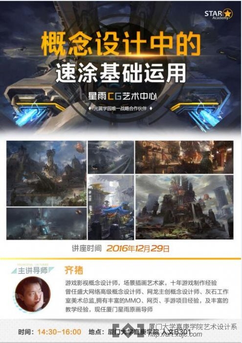 厦门星雨原画导师、游戏影视概念设计师、场景插画艺术家,十年游戏制作经验,曾任盛大网络高级概念设计师,网龙主创概念设计师、灰石工作室美术总监,拥有丰富的MMO、网页、手游项目经验及丰富的教学经验。
