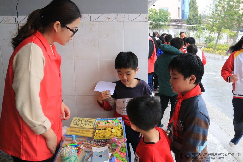 活动现场气氛轻松愉快,掌声、欢呼声不绝于耳。整个校园充满了欢声笑语,到处都洋溢着喜悦。心与心的交流,让店地小学的小学生们感受到了艺术设计系的“大哥哥大姐姐”对他们的关爱。孩子们用参加游园活动得到的奖票兑换到了自动笔、笔袋、笔记本等学习用品。