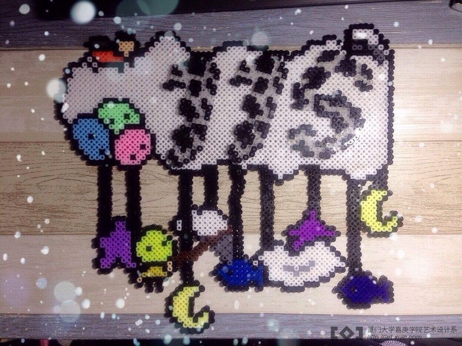 在门牌设计上,同学们更是充满了创意。有的采用拼贴,有的采用水彩手绘。门牌是宿舍的第一印象,所以同学们在选择图案方式时更多的是考虑到了美观的因素,希望在第一时间给人增添好印象。囊萤3#115在此环节中荣获最佳设计,她们采用“拼豆”的手法,将一粒粒小管子组合成拼图,这种新颖的创作方法也为她们设计增添了不少亮点。