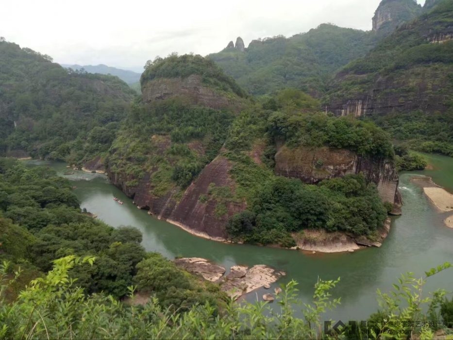 随后,同学们正式进入武夷山风景区进行写生考察,游历了天游峰、玉女峰、青龙瀑布、黄岗山大峡谷。青山绿水陶冶了同学们的性情,人为开凿的道路与周围的景色合二为一,人与自然的结合,为山水增辉添彩。同学们畅游其中,描绘人与自然风光,为后期创作带来无限灵感。