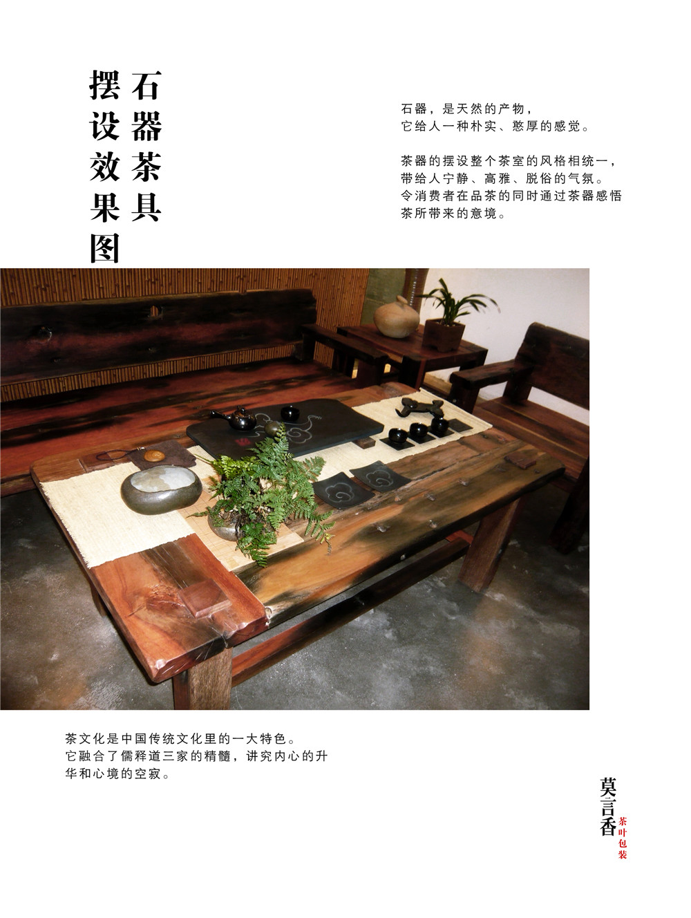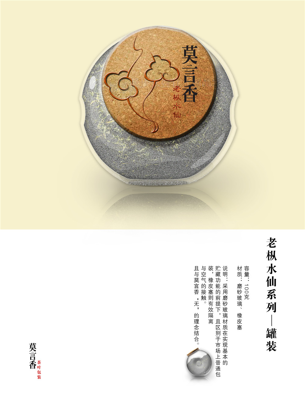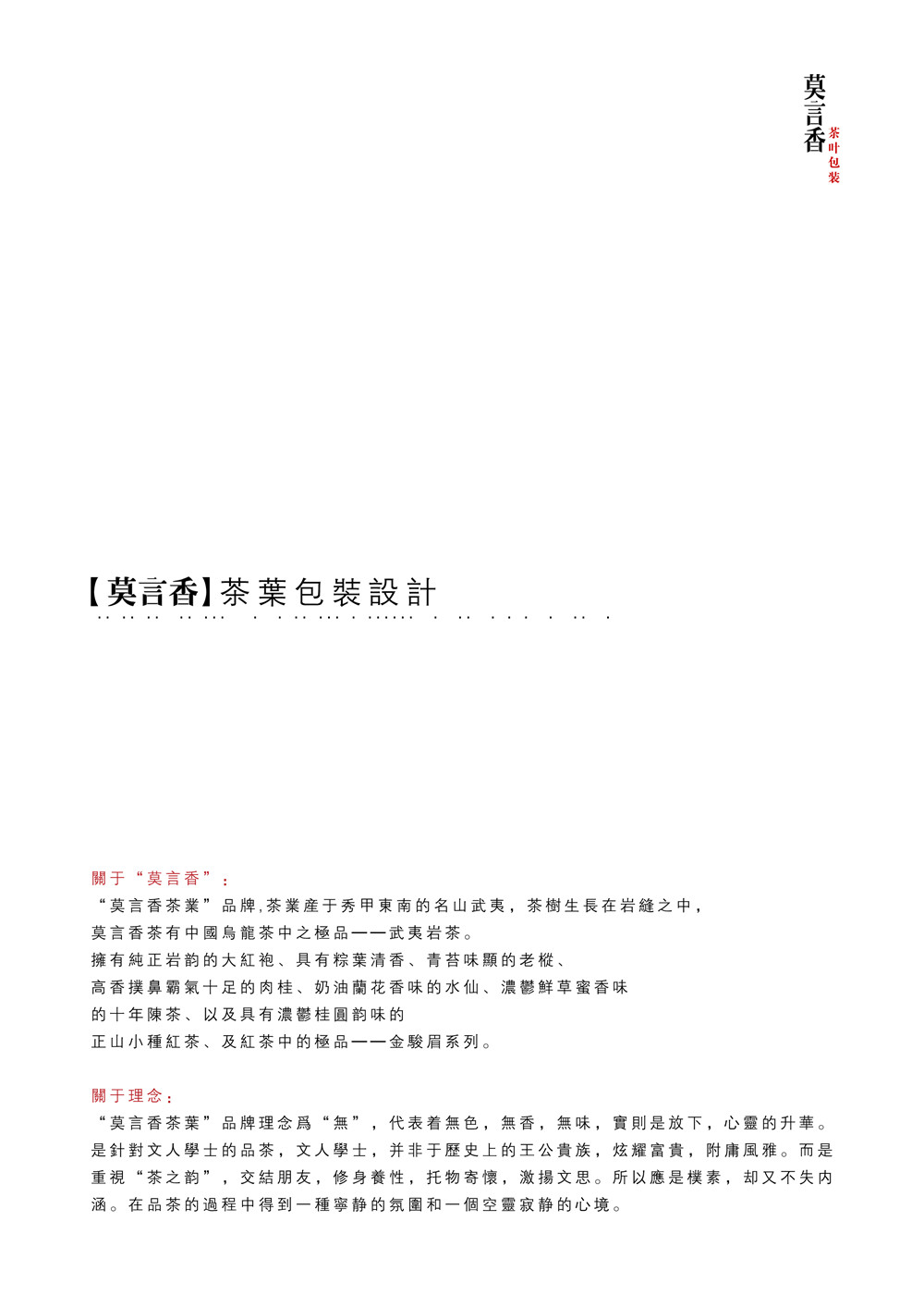 “莫言香茶叶”品牌理念为“无”,代表着无色、无味、无香,宝则是放下,心灵的升华。是针对文人学士的茶品,文人学士,并非于历史上的王公贵族,炫耀富贵,附庸风雅。而是重视“茶之韵”,交结朋友,修生养性,托物寄怀,激扬文思。所以既是朴素,却又不失内涵。再品茶的过程中得到宁静的氛围和一个空灵寂静的心境。