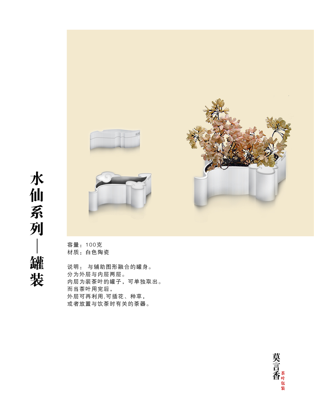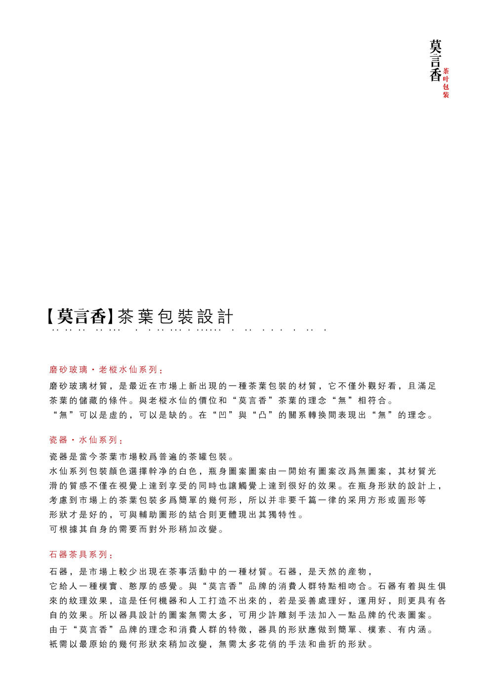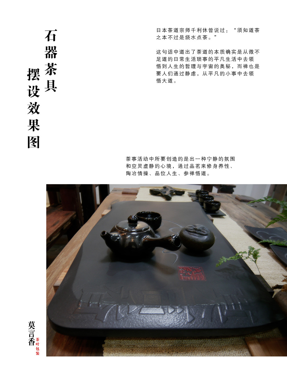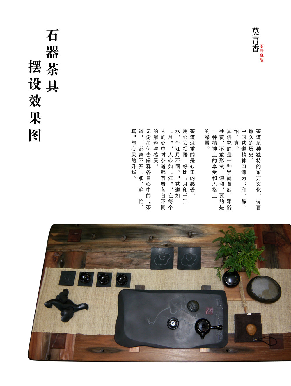 “莫言香茶叶”品牌理念为“无”,代表着无色、无味、无香,宝则是放下,心灵的升华。是针对文人学士的茶品,文人学士,并非于历史上的王公贵族,炫耀富贵,附庸风雅。而是重视“茶之韵”,交结朋友,修生养性,托物寄怀,激扬文思。所以既是朴素,却又不失内涵。再品茶的过程中得到宁静的氛围和一个空灵寂静的心境。