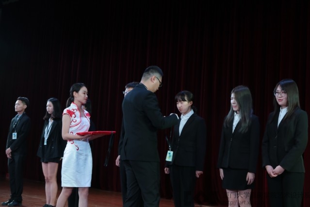辅导员刘奕姜老师将工作牌亲自授予主席团主席和艺术团的团长,主席随后进行部长们的授牌仪式,共分三轮,第一轮是办公室、外联部、生活部,由张伟主席进行授牌。第二轮由吕晨主席进行新闻部、美工部、学术部的授牌。第三轮文娱部、体育部则由王琛主席进行授牌。艺术团各队队长也由艺术团团长进行授牌。全场起立宣誓,合唱学生会会歌,并在会后进行了艺术设计系第十三届学生会全体成员的合影留念。
