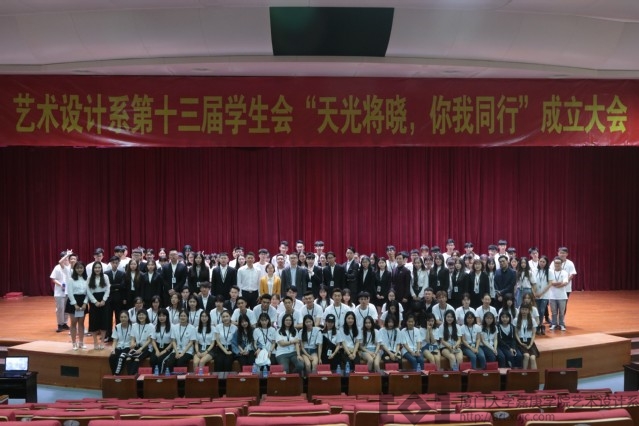 艺术设计系第十三届学生会“天光将晓,你我同行”成立大会于2017年11月16日中午在主三大报告厅举行。艺术设计系系主任、辅导员、团委书记及其他各院系主席等受邀出席了本次大会,各院系学生会主席团也为本次大会录制了视频并祝愿本次成立大会顺利举行。