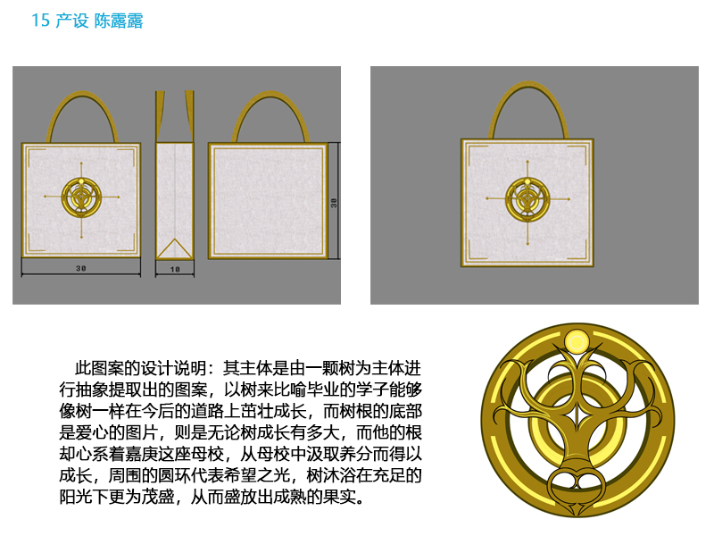 此次比赛共计十二个小组进入到最终决赛,分别用PPT进行展示讲解,几组参赛者都精心准备,作品让人耳目一新。一等奖的作品来自2015级产品设计专业陈晨同学,作品中从“大设计”(设计的三要素)、“平凡”(小绿)、“旋律”(主楼群)、“夜幕”(凌云楼亮灯)四个元素表现了“嘉”的各个方面,从“嘉”的具有意义性的体现转化成logo呈现;二等奖作品设计者,2015级环境设计专业的陈子阳同学巧具匠心,以春夏冬季为色调,取景选用南中北三区具有特色的建筑:春天的凌云楼三七女生节亮灯、秋天的丰庭园区和想象中冬季下雪的至善亭,展现嘉园生活的季度变化,记忆中没有冬天的“嘉”,是否更让你怀念呢? 2015级产品设计专业陈露露同学,给作品给予了希望,以树来比喻毕业的学子,无论树成长有多大,而他的根却心系着嘉庚这座母校,从母校中汲取养分而得以成长,周围的圆环代表希望之光,树沐浴在充足的阳光下更为茂盛,从而盛放出成熟的果实;还有来自2015级产品设计专业的黄旭同学,他则表示灵感来源于他在嘉庚的每一天生活感想,用手绘的形式记录下来。