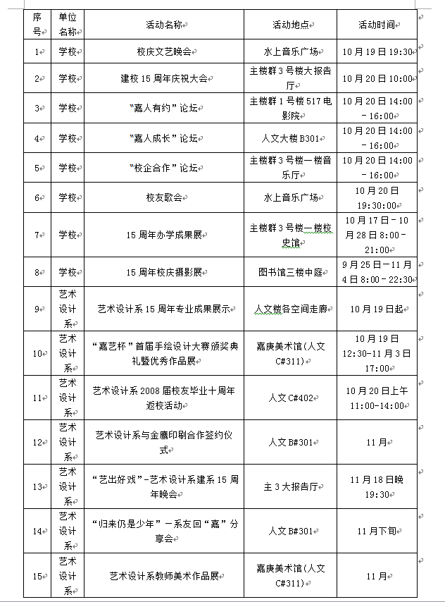 10月20日,厦门大学嘉庚学院将迎来建校15周年庆典,热忱邀请各位校友重返“嘉园”,重游校园,重品食堂,重逢师友,共度美好时光。现将学校及艺术设计系15周年校庆系列活动予以公布: