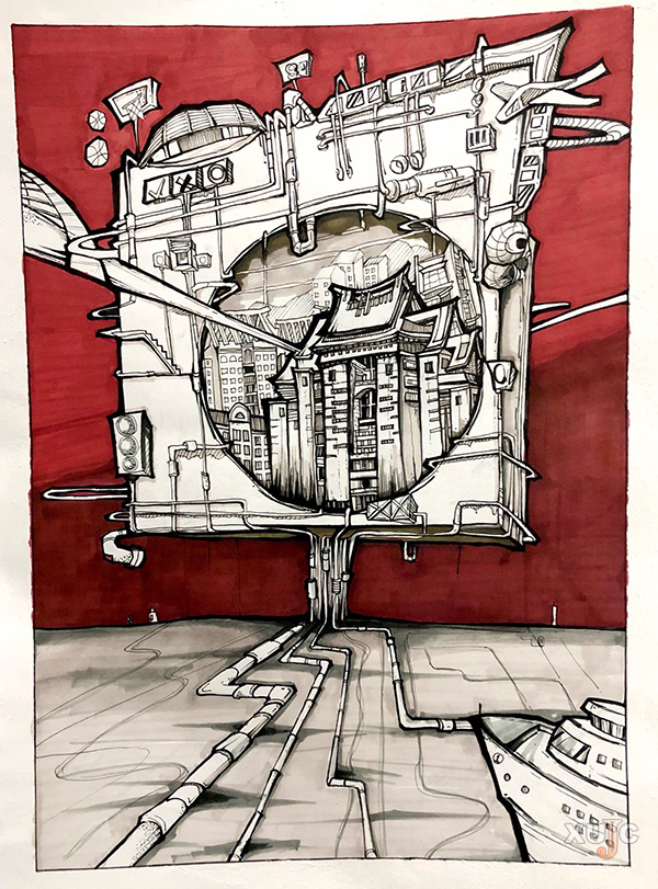 2017级艺术设计系学子林雨欣的作品《回“嘉”》表达了作者对嘉庚学院的依恋和喜爱。作品以“回”字为主体进行创作,画面中的动车、飞机、轮船等通通驶向嘉庚学院,表现了对回“嘉”的渴望。