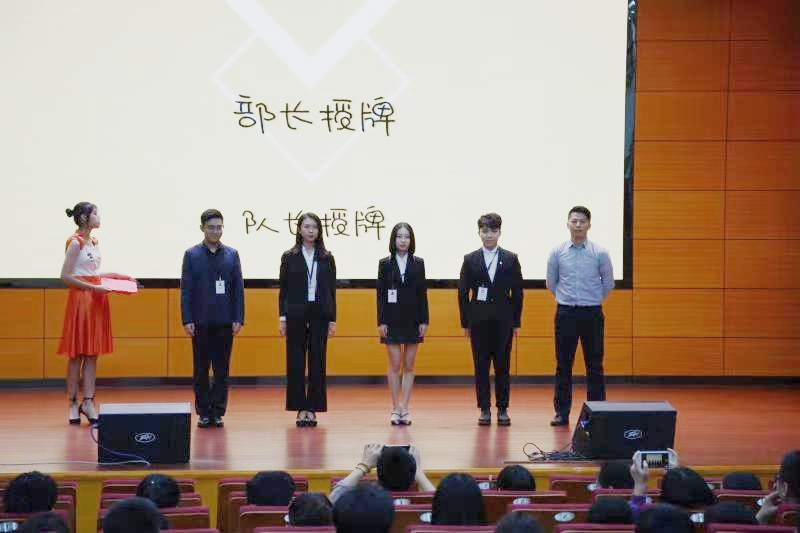 紧接着,举行学生干部授牌仪式、宣誓仪式及系旗交接仪式。