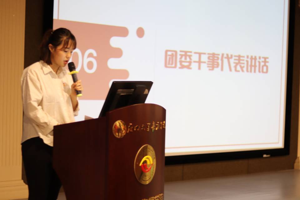 观看了团委大视频与别系团委书记赠与的热情祝福,我们有幸邀请了艺术设计系团委副书记——王露佳老师讲话。王老师表示,对第二届艺术设计系团委寄予高度的评价和厚望,也深度剖析了目前所存在的各方面问题,对下一阶段的工作提出具体要求;她强调各部长要领导部员、帮助部员,起到身先士卒的作用,为团委这个年轻的大家庭输送鲜活的血液,使大家对团委今后的发展工作也有了初步的认识与想法。随后,学生党支部书记吕晨同学、副书记肖璇同学和干事代表支彦懿同学进行了优秀的动员,他们目标明确、严格律己,值得大家揣摩学习。