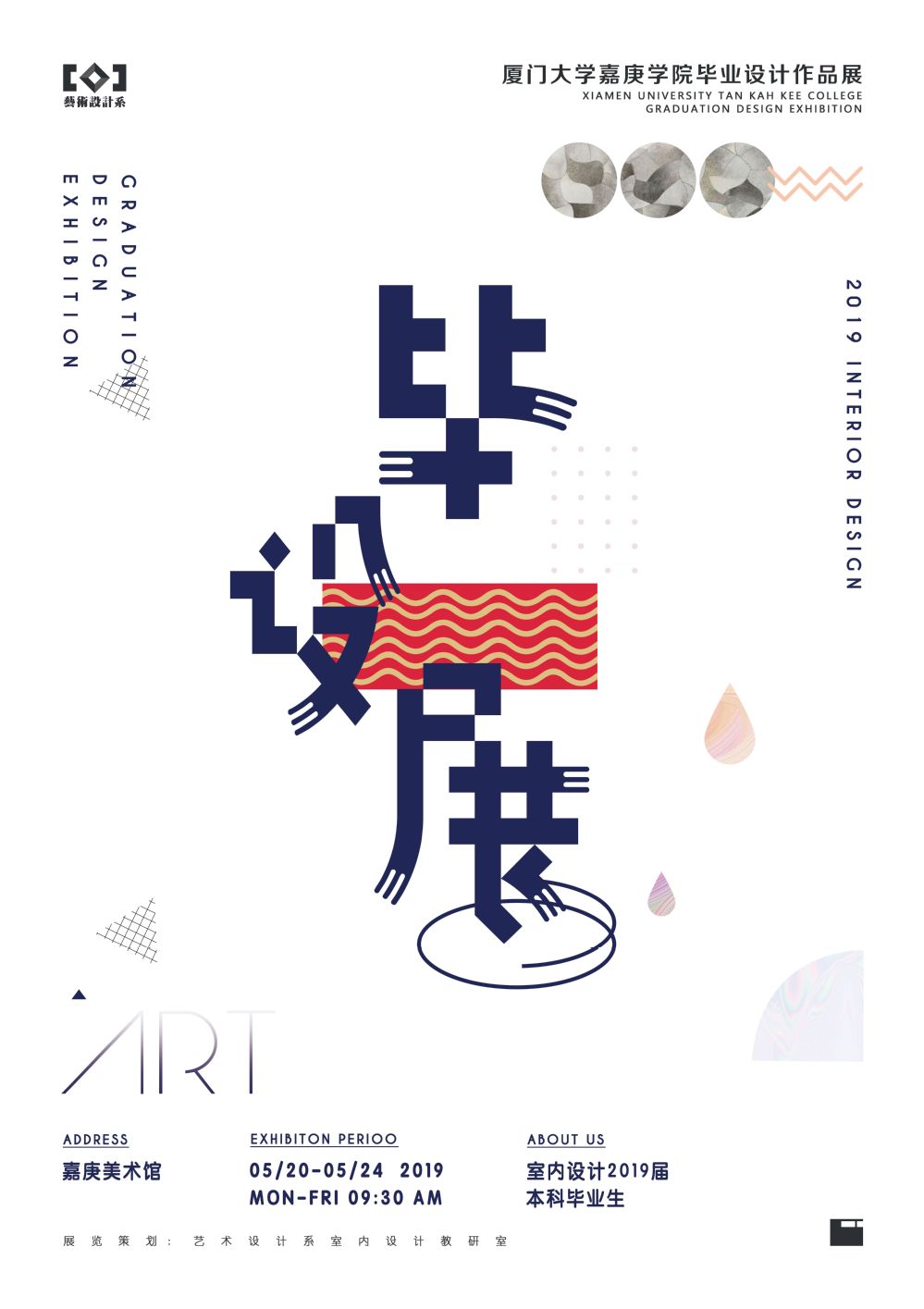 2019届室内设计专业毕业作品展览于2019年5月20日上午09:30在嘉庚美术馆开幕,展期为5月20日-5月24日,欢迎各位同学和老师前来观展交流。