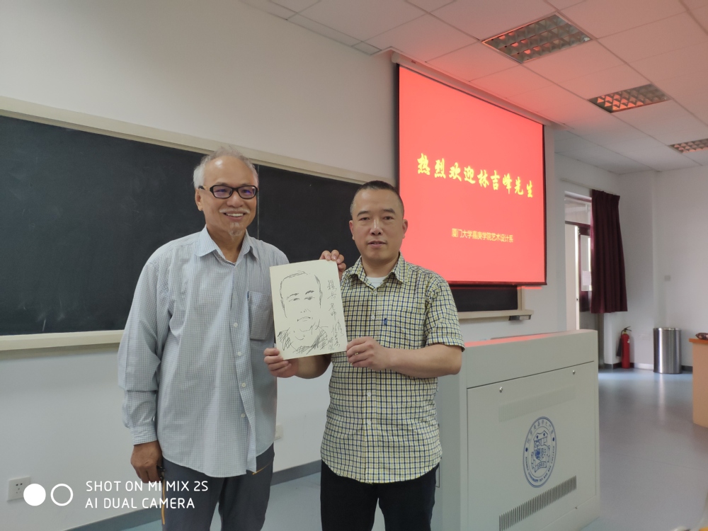 林吉峰先生1952年出生于台湾嘉义,任职台北市立美术馆25年退休。在职期间积累了非常丰厚的艺术创作素材与艺术修养,漆画、水墨画都是其擅长领域,在上海、宁波等地多次举办个人作品展。他真诚与在场师生分享了自己的个人创作经历,告诉同学们要注重创作经验的积累,当你在一个领域积累足够多,创作灵感也会源源不断。