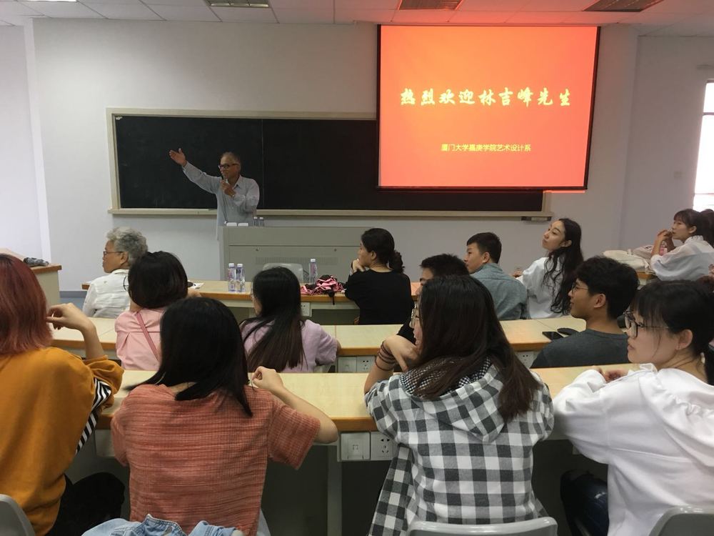 林先生亲和幽默,在场学生问林先生,在艺术设计的过程中,通常需要搜集创作素材,但对学生来说,素材运用有时不能很好把握度,想跟先生探讨抄袭、借鉴与致敬的区别。林先生回答:创作素材就像是作品的原材料,我们想象工厂加工产品,原材料与成品在功能上、造型上以及使用价值上,都与原材料有天差地别。我们在创作过程中,也要在素材的基础上,升华我们自己的作品,呈现更好的设计成果。