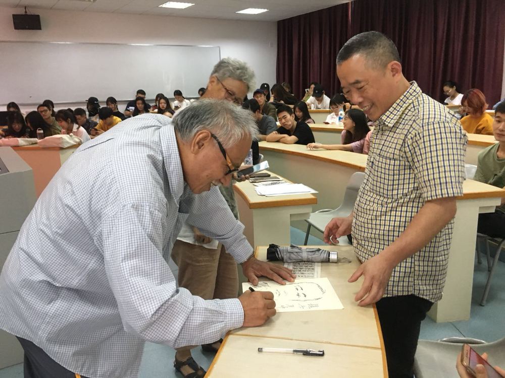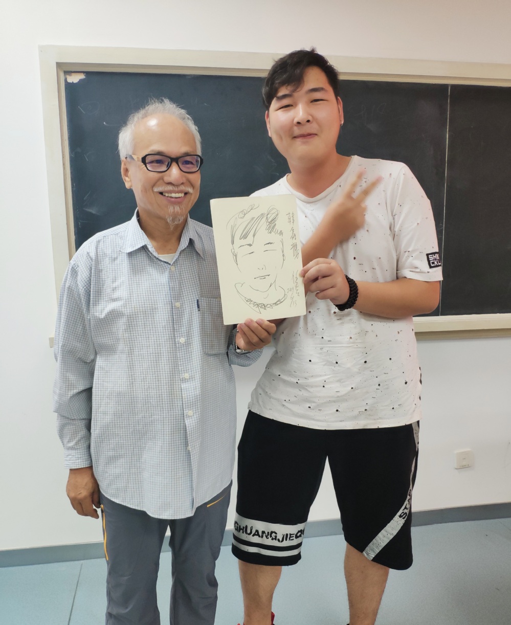 林先生现场给大家展示了自己高超的速写技巧,两份钟之内完成一幅人像速写,在场多位老师和学生获得林先生速写画像。
