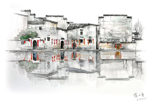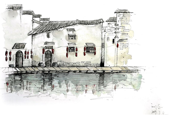 出发前,指导老师对当地建筑进行了详细解析,同学们对宏村的建筑有了更深刻的理解,加深了对徽派建筑的认知,拓宽了传统村落规划和建筑设计视野。徽派建筑是中国古建筑最重要的流派之一,它的工艺特征和造型风格主要体现在民居、祠庙、牌坊和园林等建筑实物中。徽派民居的外观整体性和美感很强,高墙封闭,马头翘脚,墙线错落有致,黑瓦白墙,色彩典雅大方。徽派民居的窗棂、楹柱等木雕工艺精湛,作为一个传统建筑流派,徽派建筑融古雅、简洁、富丽为一体,它至今仍能保持着独有的艺术风采。这里也是全国三百多所高校写生的理想圣地。