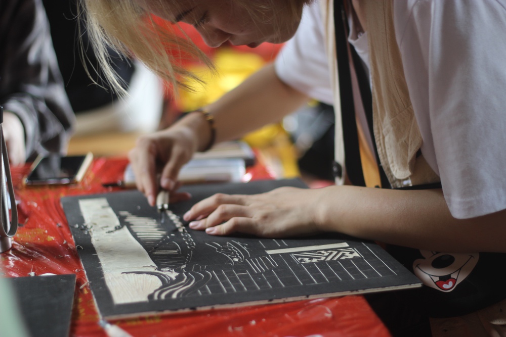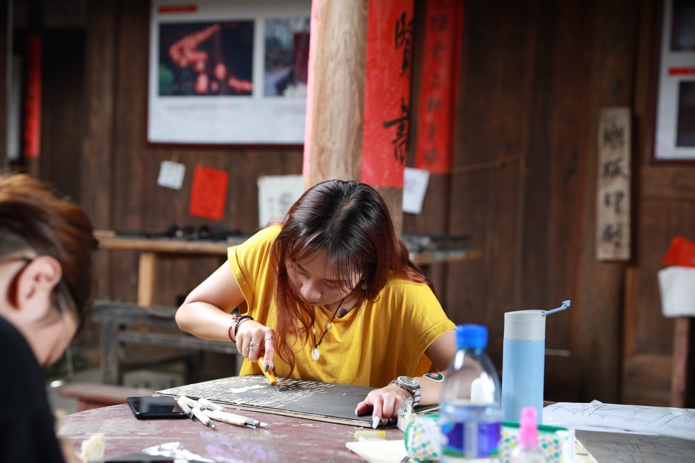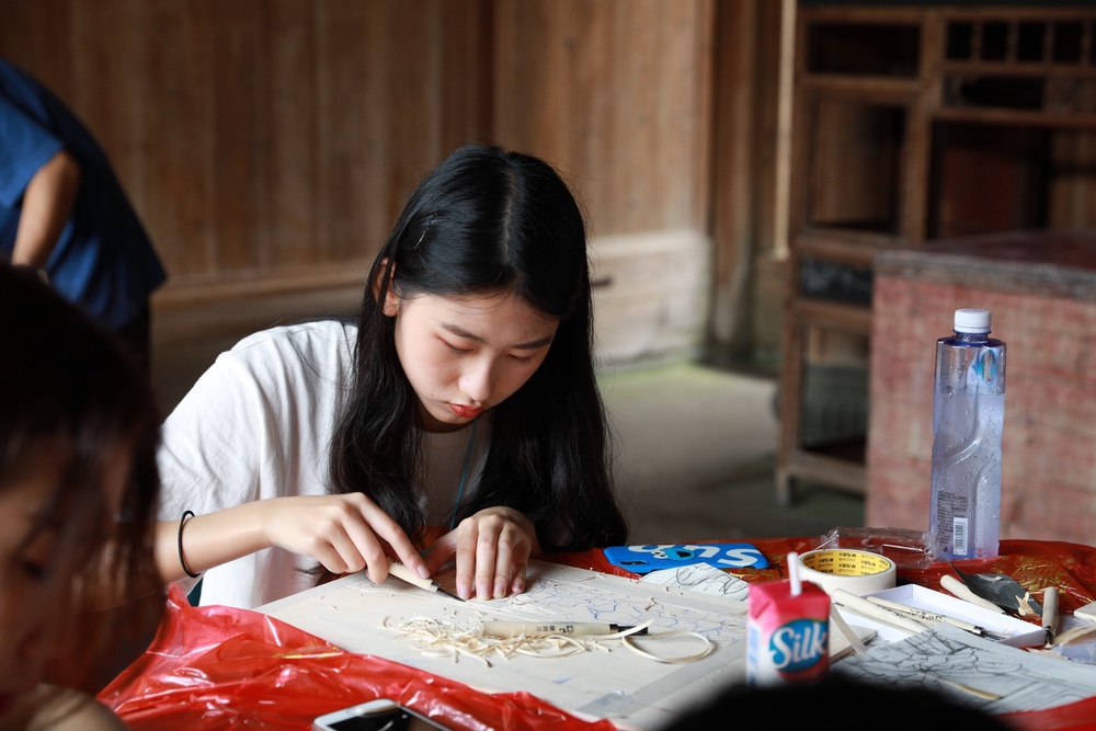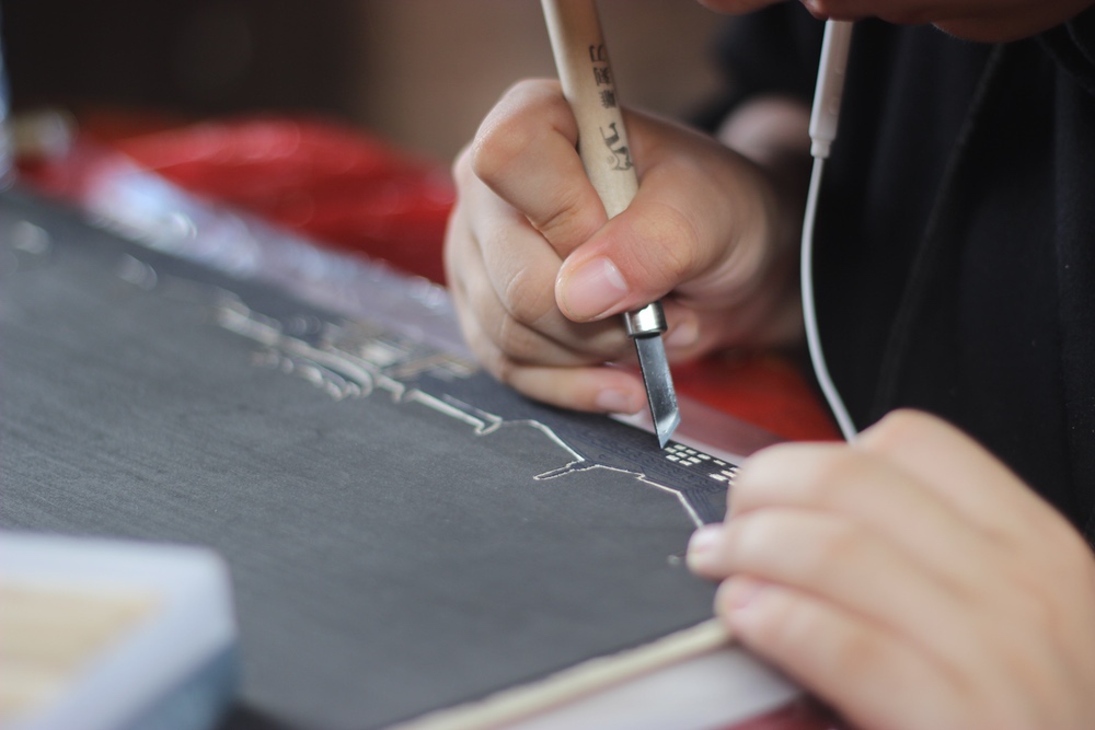不知不觉,刀版之间纵横错落,实践周的日程已半,视传平面设计专业学子在老师们的带领下感受古坊古声,从从一件件古朴的雕刻中感受当时的艺术,我们还在路上,感受雕刻文化的同时也提升着自我。