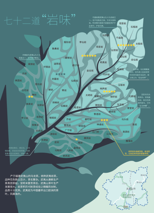 最终呈现的作品,有关于武夷山的行程记录、有关于武夷山的动植物分布、有关于武夷山的漂流路径。也有同学选择了武夷山大红袍的制作工艺、武夷山茶叶的发展简史、制作工艺,甚至对当地特色菜肴制作方法的介绍等。