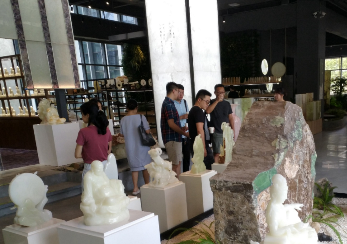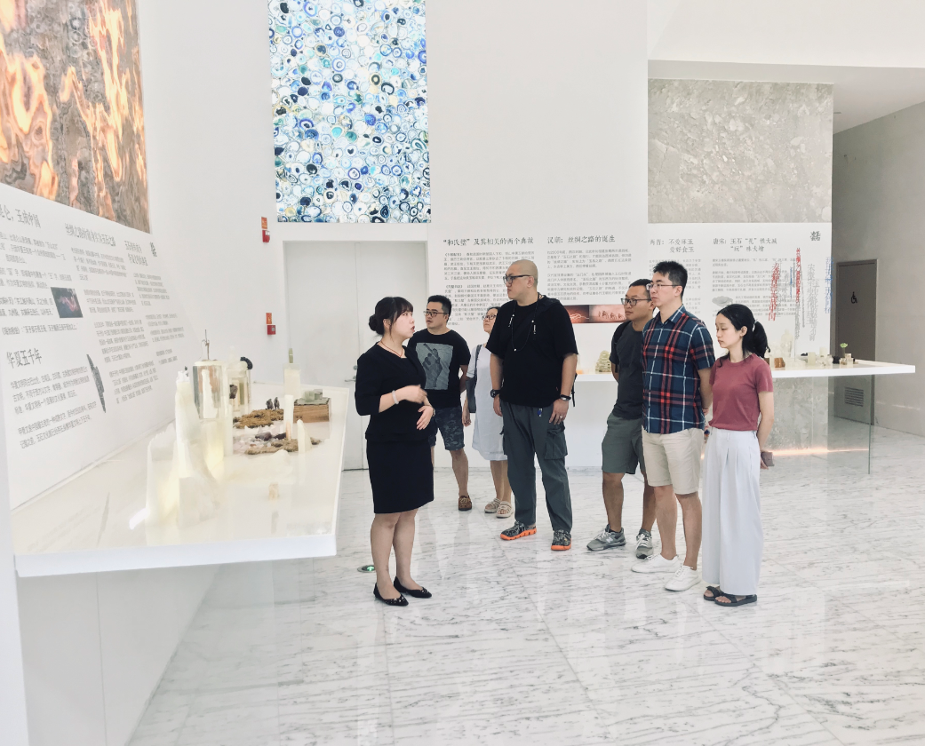 几位老师在凌云玉石博物馆经理杨佩女士的带领下,参观了凌云玉石博物馆,了解玉石的发展历史以及凌云玉石博物馆的大体情况。随后,产品设计专业老师前往现代玉石加工车间,实地观摩玉石从原来料到精美设计品的成型过程。负责人带领几位老师参观产品展示博物馆,这里展示了博物馆的经典作品,几位老师了解玉石在现代产品中的设计与运用,了解了玉石与其它材质相结合的方式。