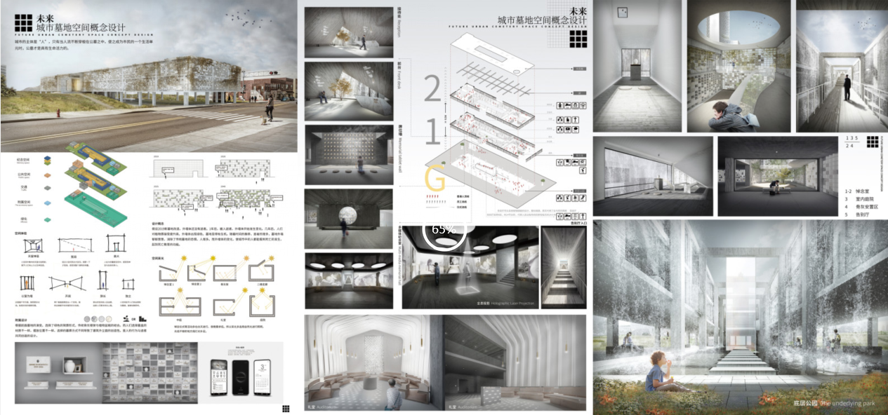 其中由李波老师指导,余越扬设计的《未来城市墓地空间概念设计》,获得城市综合体与城市类作品优秀奖。