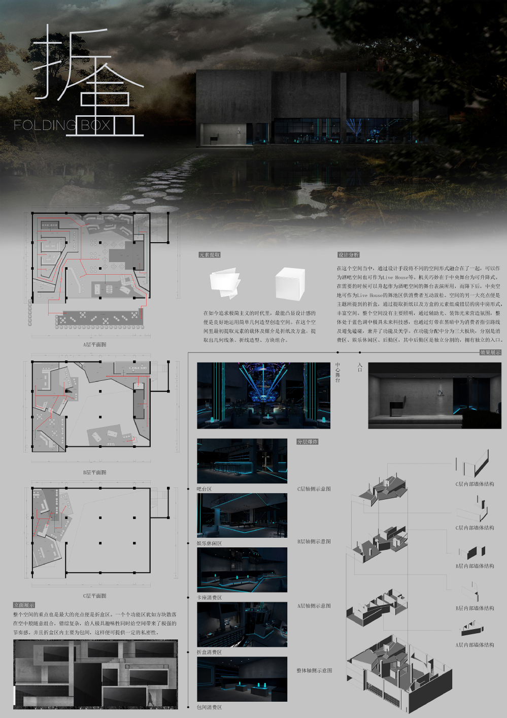 由杜文超老师指导,单文欣设计的《薏宁女性生活会馆室内设计》和李立炜设计的《折盒--静吧娱乐空间设计》获得商业建筑与空间类作品优秀奖;李旭明设计的《“黑光”电竞网咖空间设计方案》获得光与空间类作品优秀奖。