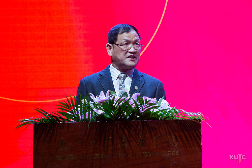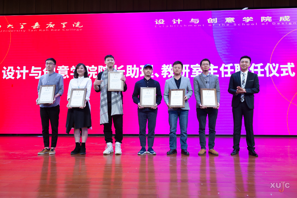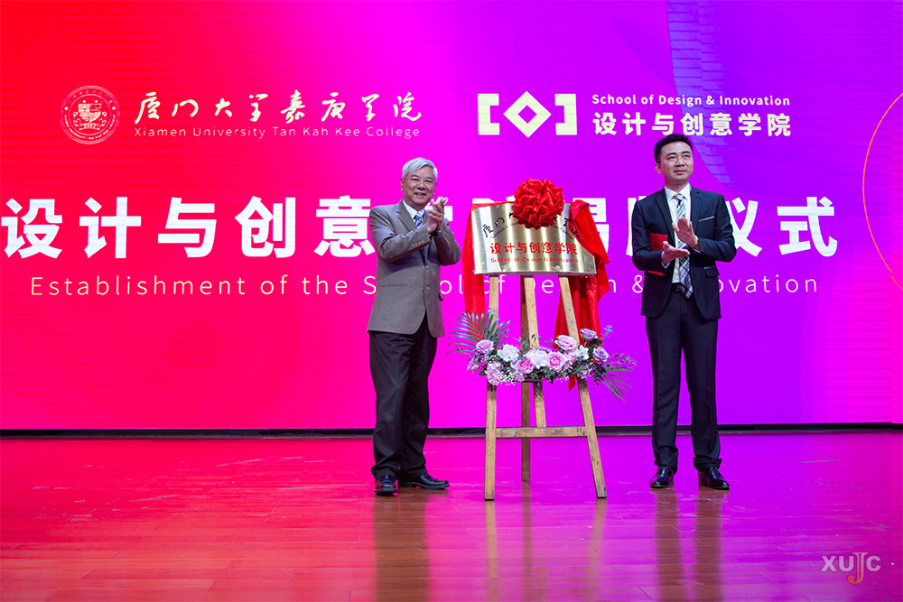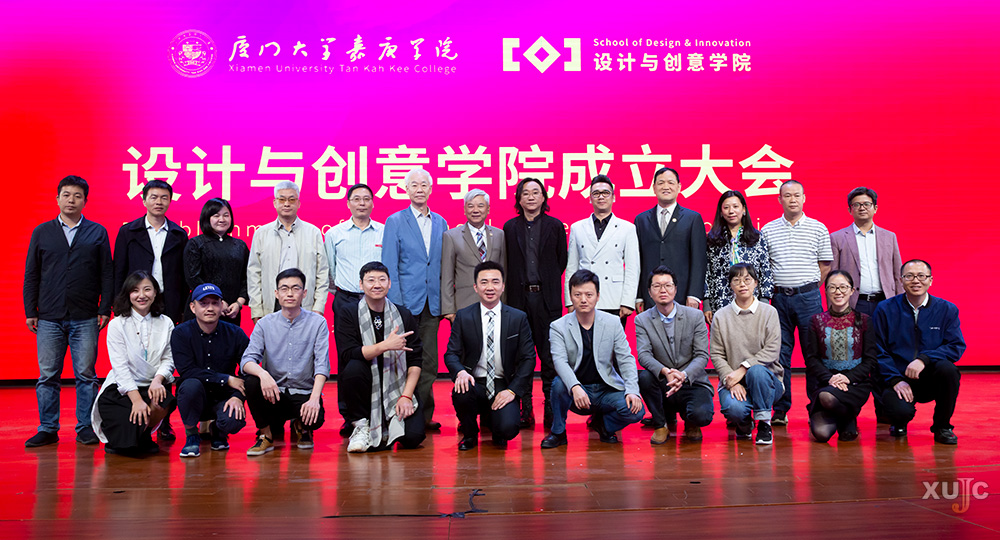 嘉庚学院院长王瑞芳,副院长鲁同安、雷锐生、洪永强,纪委书记林瑞榕,党委副书记王洁松,院长助理王冬梅、姚祖婵、林斓、廖智军,各教学单位、行政部门主管和设计与创意学院师生共同庆祝设计与创意学院的成立。