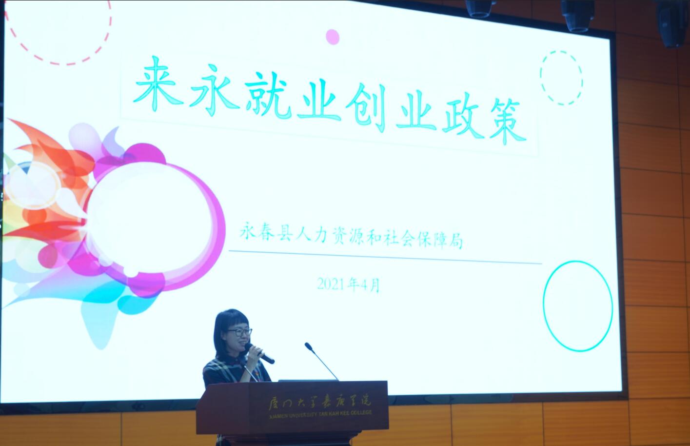 大会的最后,永春县就业和人才服务中心副主任潘丽明女士为在场师生介绍了永春县人才引进政策,期待更多同学来永春创业就业。