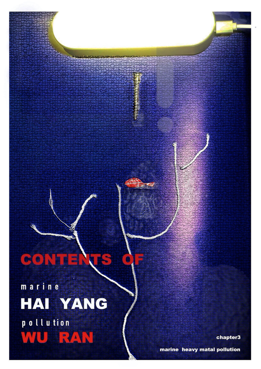 第三幅重金属污染为主题,钉子代表重金属污染,在红色小鱼周围做出被包住的感觉体现重金属污染的危害。希望以这一系列作品唤醒人们对于海洋保护的意识,意识到人类已经严重危害到了海洋生物的生存。