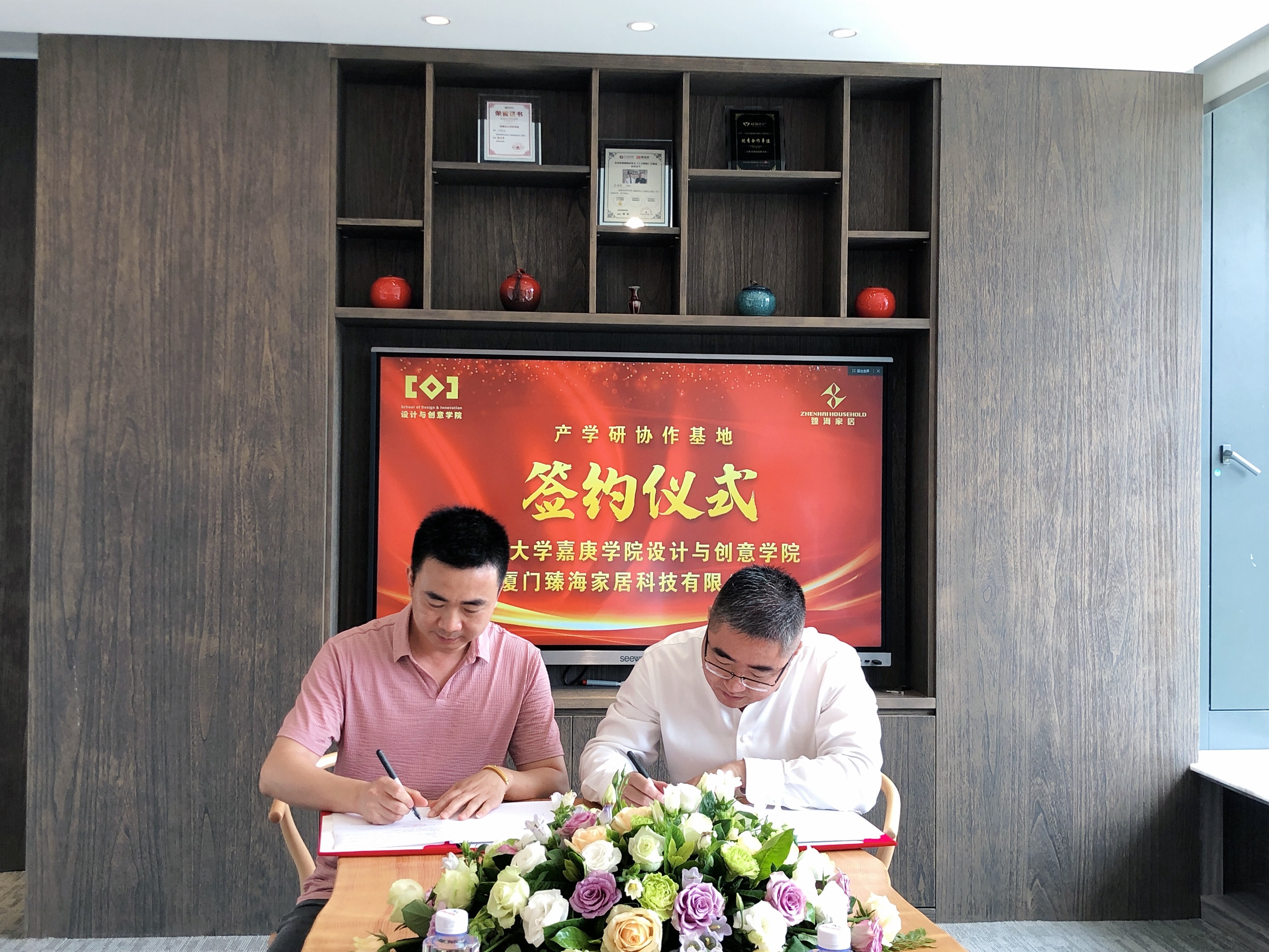 厦门臻海家居科技有限公司创始人吉海军为我院前往参访的执行院长林波、院长助理张倩倩以及院办秘书肖莉介绍了公司的创办历史及在行业内取得的成就。作为实习就业教学基地,臻海家居可以为我院学子提供实践教学环境,提供实习就业机会,并选派具有丰富项目经验的设计师担任实习就业创作导师。双方可以依托各自的专业业务能力及人才储备优势,在环境设计、文创、技术创新等相关方面开展科研和项目申报工作,臻海有感于我院的办学特点和办学成果,愿意捐助一笔成果宣传基金,自协议签订,臻海家居将连续五年,每年为我院提供1万元,用于我院办学成果宣传,提高我院办学影响力。希望能有效助力高校培育实践性强、具有扎实的相关学科基础、更强的科学研究与应用能力的多层次人才。