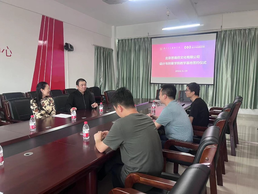 签约仪式后,双方对今后合作的具体开展进行友好洽谈。会谈中,北京思南府文化有限公司创始人对我校设计人才培养的模式表示认可。双方表示,协议签订后,将切实开展对学生的合作培育工作,引导学生重视对传统文化的学习和了解,从传统艺术作品中挖掘符合时代审美的设计元素,采取小步快走的策略,有效率的生成相关研究成果,沉淀研究内容,以期获得更大的人才培养和社会效益。