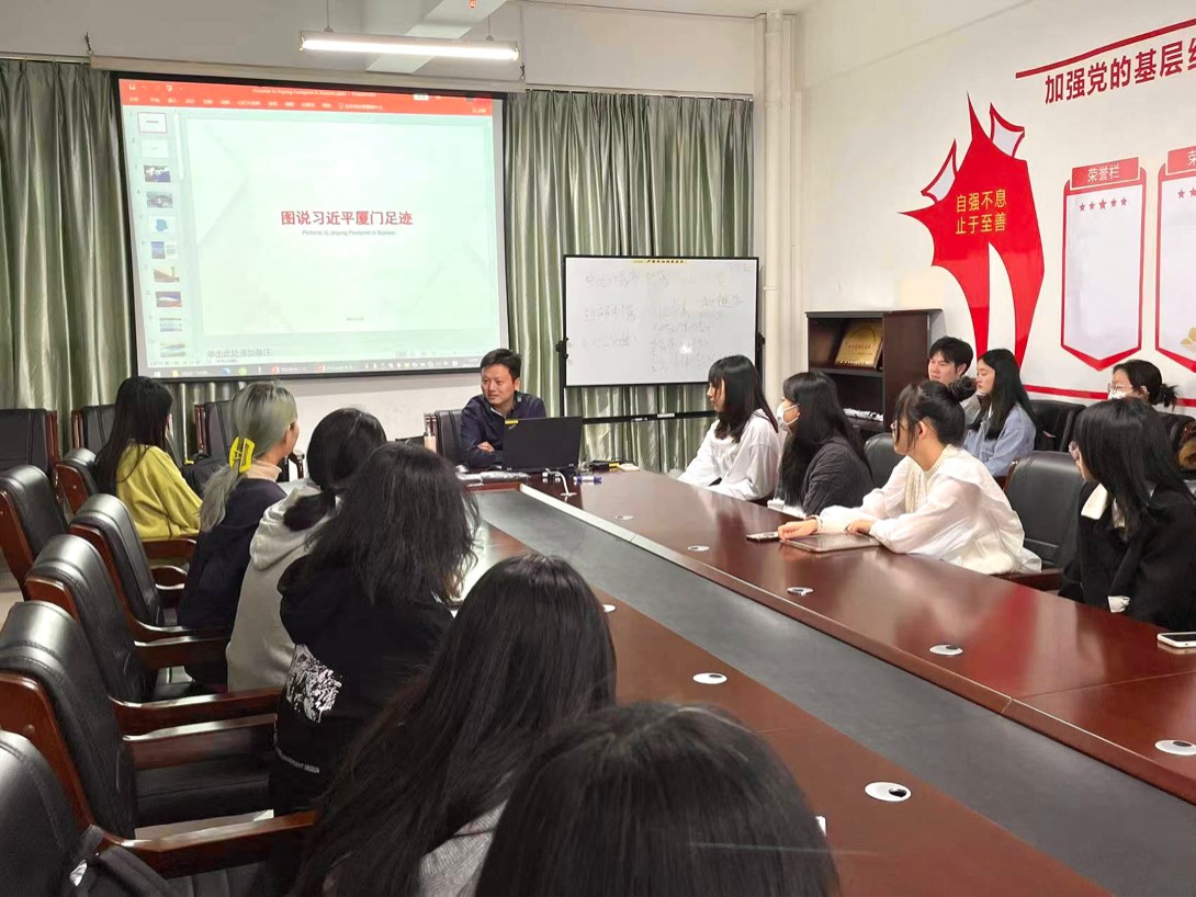 11月25日,设计与创意学院学生党支部在文C503党员活动室召开“图说习近平厦门足迹”主题党课。此次党课由我院学生党支部书记赖赟主持,党总支书记李波老师主讲,学生党支部全体党员、预备党员、积极分子参加党课学习。