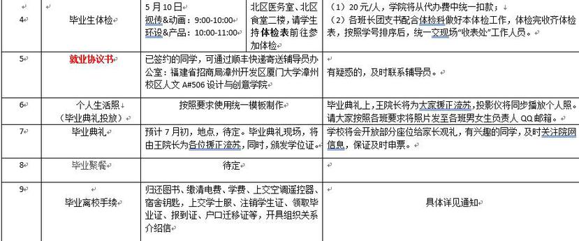 请各位同学提前做好安排,在规定时间内返校完成相关工作。具体内容详见附件。同时,请大家通过各种渠道,结合自己的兴趣、爱好和特长进行就业,对于《就业协议书》、《档案》和《户口》等有不清楚的地方,请咨询各专业辅导员。