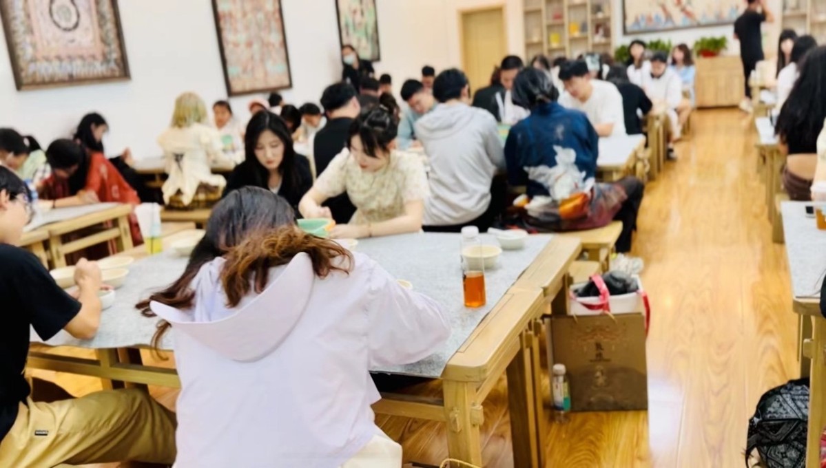 实践周最后一站是敦煌,是此次实践周重要行程。师生一行参观莫高窟洞窟壁画,在崔老师争取下,敦煌美术研究所的李冰凌老师给我们带来关于敦煌图案设计与文化的专题讲座,研究所郭晓丹老师带领师生一行体验古法颜料的制作方法。敦煌研究院美术研究所副所长韩卫盟老师,带学生们参观了雕塑与绘画工作室,并亲自为大家讲解敦煌艺术创作背后的故事以及敦煌研究院目前专研的项目,大家感受到敦煌艺术的传承与延续。