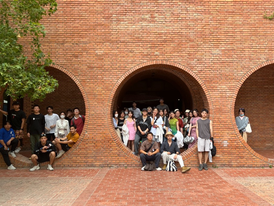 红砖美术馆也是北京考察的一个重点。红砖美术馆前身是个工厂,后由既精通建筑又痴迷园林的建筑师董豫赣设计,是一座建筑与园林共融,传统与现代结合,空间与时间交织的美术馆。老师先带同学们参观了美术馆的艺术展及美术馆建筑空间,而后一同品游园林空间,由于同学们刚上过中国传统园林课程,品游建筑园林,感受愈加深刻。品游过程中,老师对建筑和园林空间的尺度和各处细节进行了深入分析,在这如画的建筑园林中,同学们不禁感叹:红砖美术馆的实际体验比图片上看到的要精妙绝伦多了。框景、借景、移步异景等等所有先前存在于理论认知上的文字词汇都在那一刻化作了触动内心的现实。