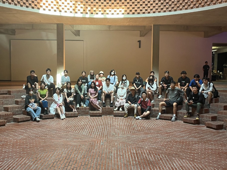 第二天主要考察社区南边的犬舍、唐舍、沙丘美术馆、酒神剧场、马会等。与天津考察的大型建筑相比,这些建筑小而美,但这并不妨碍他们成为知名建筑。众多建筑都成为了同学们课程学习的范例,不仅设计精良,建成效果把控到位,而且成功出圈,成为了“网红建筑”。其中由直向建筑设计的阿那亚礼堂和海边图书馆是典型代表,建筑师在空间、形式、采光上的巧妙设计以及对氛围意境的精准把控,让建筑成为了黄金海岸的丰碑,成为了众人向往的“神圣殿堂”。在考察阿那亚礼堂和海边图书馆前,不少同学就曾对这些建筑进行建模和渲染,而通过现场的游览考察,检验了对建筑的理解偏差,从而对建筑设计有了更深刻的理解。