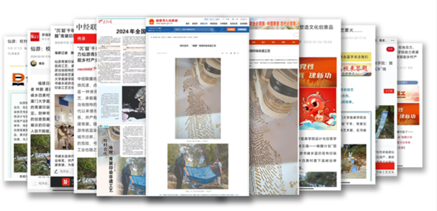 在活动过程中,大部分青黛历史文化的成果首次被团队深入挖掘出来,通过实地调研走访中形成5万余字关于青黛非遗的访谈报告,覆盖书峰乡四黄村、锦峰村、东田村等主要村落,人群覆盖青黛制作技艺传承人、青黛印染工艺传承人、马蓝种植农户和青黛印染遗存相关人员,通过查找相关资料和实地观察总结,形成《青黛名词释义与考辩》、《福建青黛产业发展模式创新研究》等文字报告,深入田间地头采访当地人员百余人,策划2场关于青黛印染工艺创新展览,观展人数达上千人。活动得到了当地政府的大力支持和高度认可,同时也受到福建省人民政府官网、中国福建三农网、福建日报、中国经济新闻联播、纺织中国在线、海峡都市报、仙游电视台、仙游县组织部、仙游县宣传部、学习强国福建平台、仙游县摄影协会等媒体的持续深入报道,浏览量达100W+。