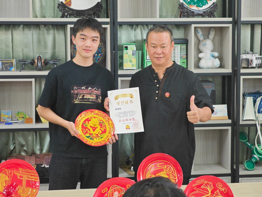 活动的最后,举行了隆重的颁奖仪式。四位来自非遗领域的专家老师郭劲旺、郭银燕、农民画非遗传承人柯登科、纸雕非遗传承人陈开展作为颁奖嘉宾,为在本次项目中表现突出、作品优秀的学子们颁发了荣誉证书及奖品,表彰他们在传承非遗技艺、勇于创新设计方面的卓越表现。